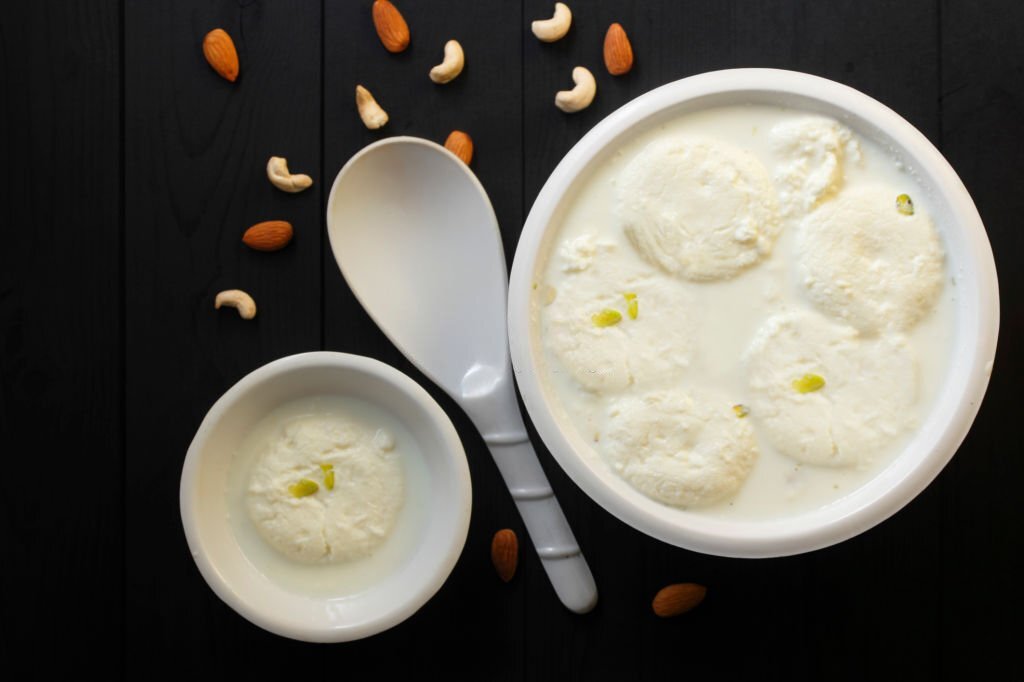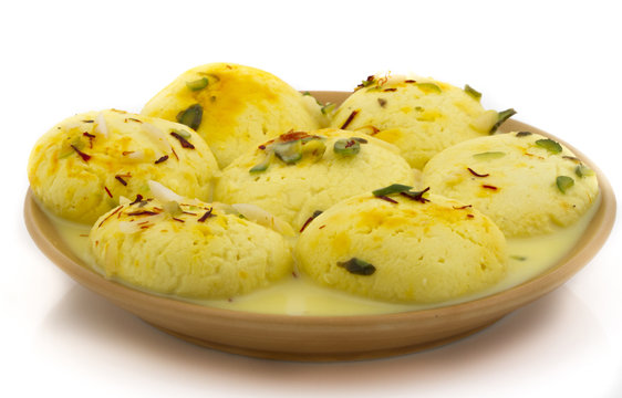 (2 Pcs) flattened balls of cheese soaked in malai (coated cream) flavored with cardamom.